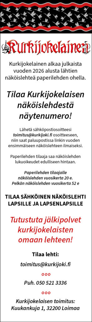 Seuraava Kurkijokelainen ilmestyy 20.1.2022. Materiaali siihen ilmestymistä edeltävän viikon keskiviikkona.